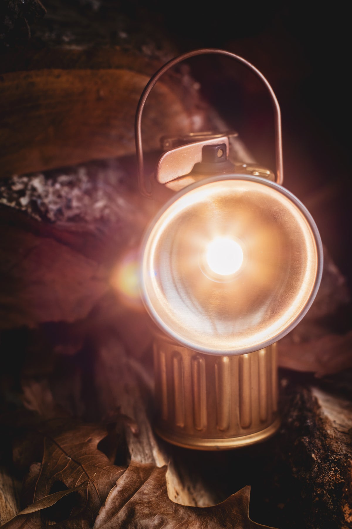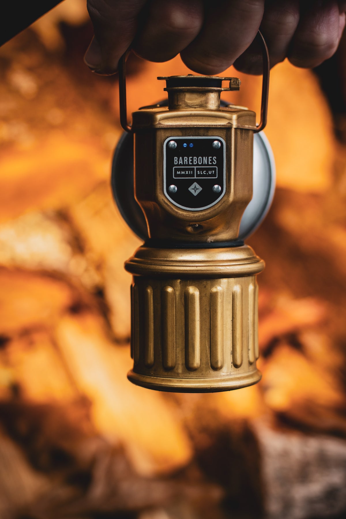 Traditionally, this lamp was powered by gas and lit by a flame. This updated version features a dimmable 2-watt LED light and a removable, rechargeable LI-ION battery.