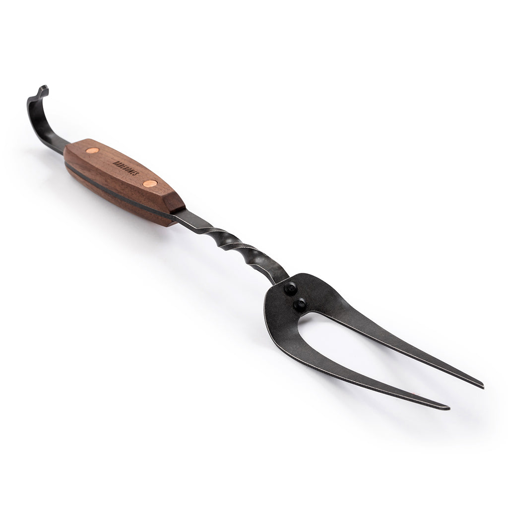 Designed to hang, our tools are crafted with hand-forged stainless steel and fitted with a smooth, natural walnut handle that keeps cool over high heat.