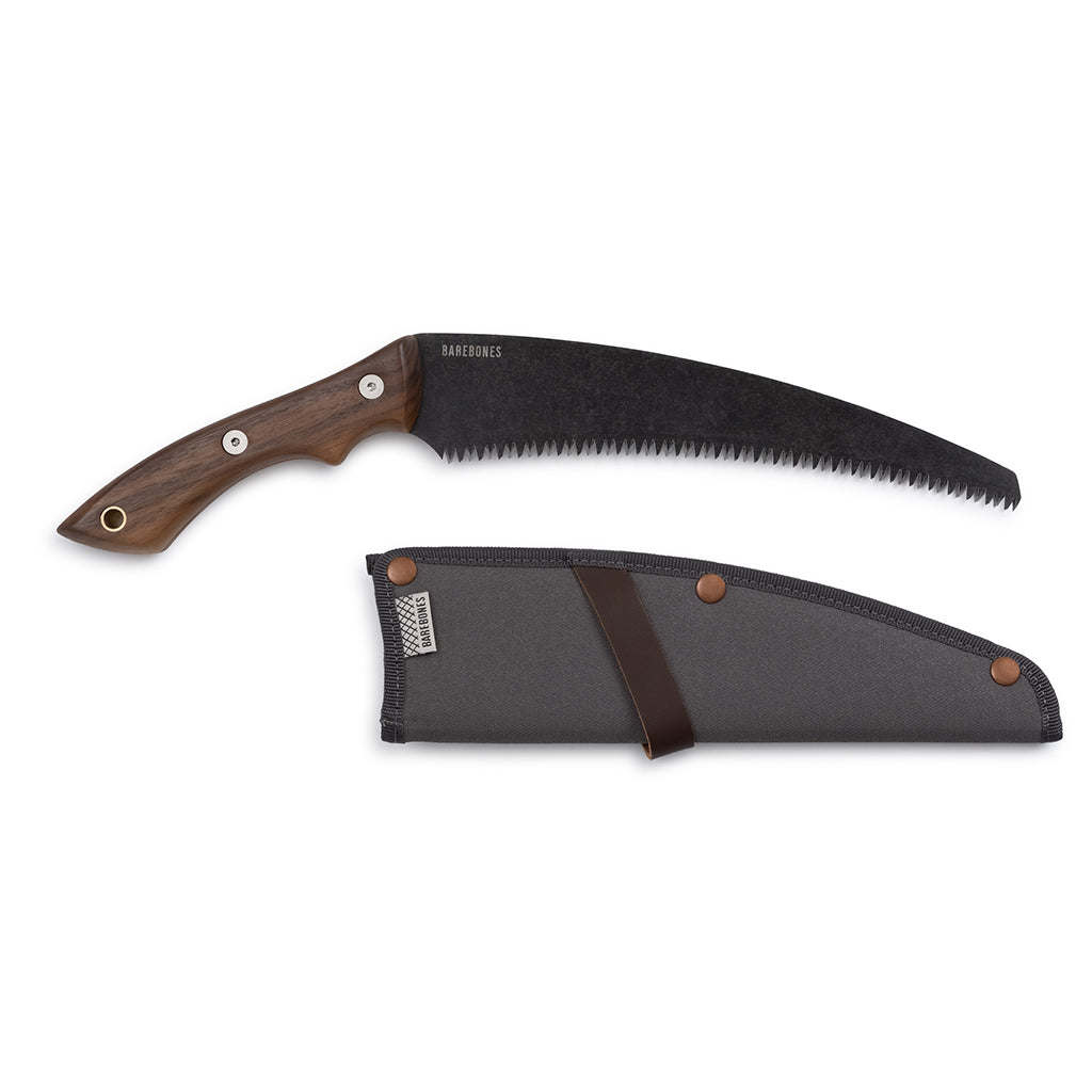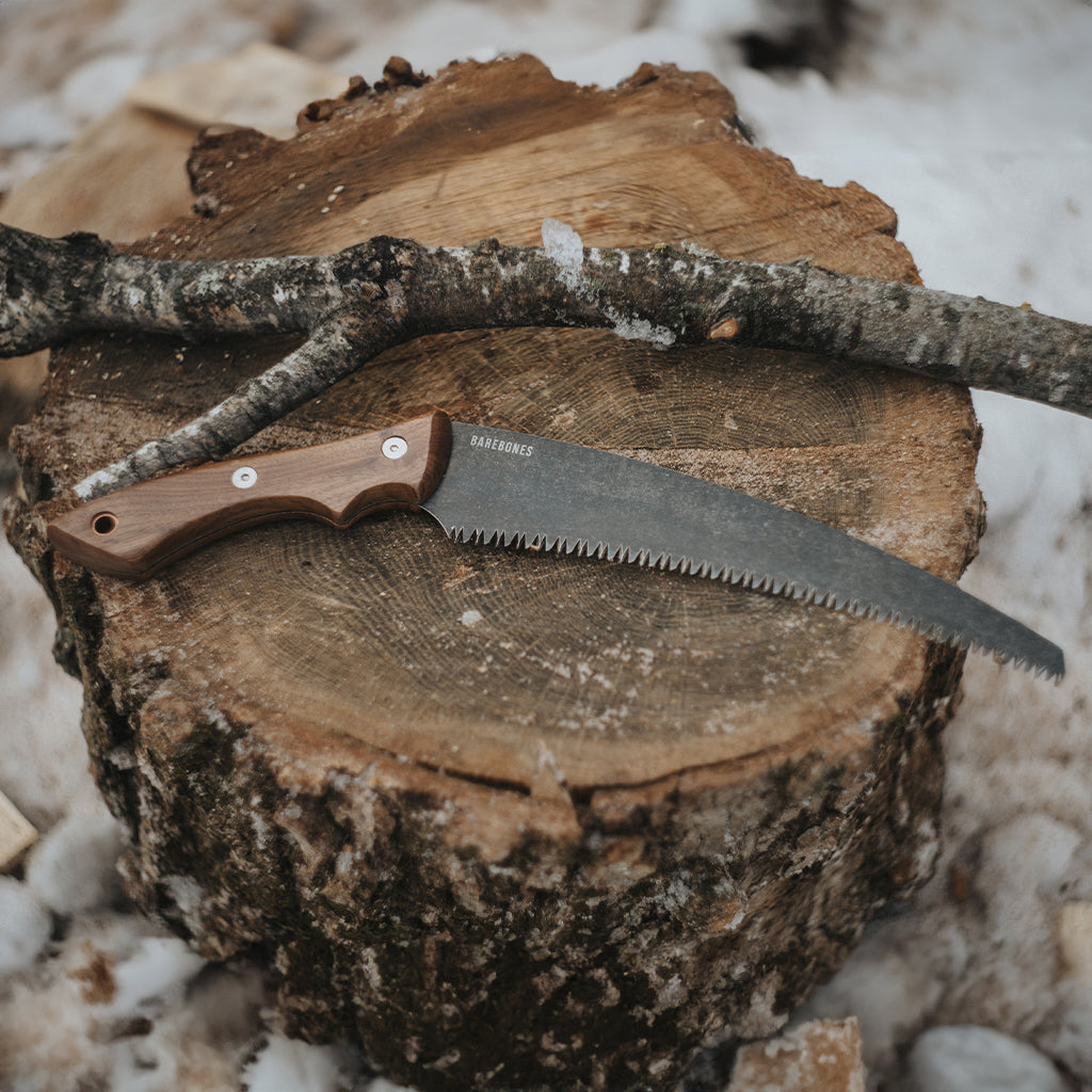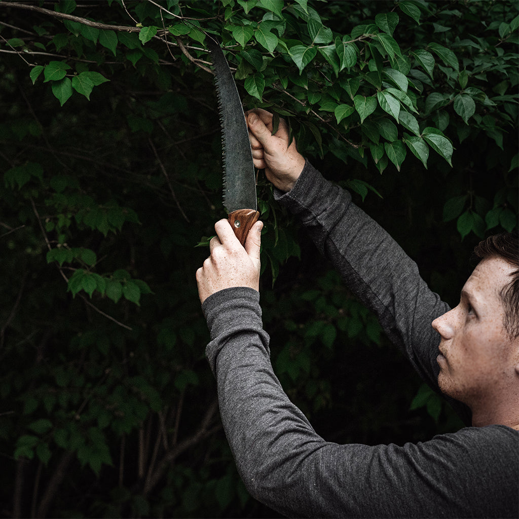 While traditional hand saws rely on a pull-push motion, the simple curved blade and aggressive teeth of the Timber Saw require a push-strike motion. The result is a super effective, safe, and fast cut. Ergonomic and durable walnut handle fits smoothly in your hand for perfect, even pressure and pulling strokes.