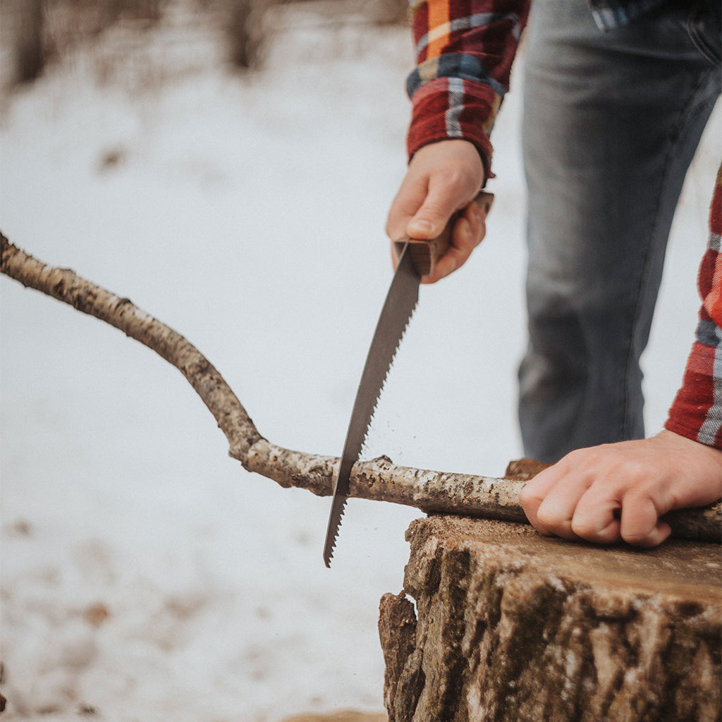 The Timber Saw provides a quick, clean approach ideal for cutting smaller pieces of wood at a campsite, cutting off branches and deadwood, and pruning trees.