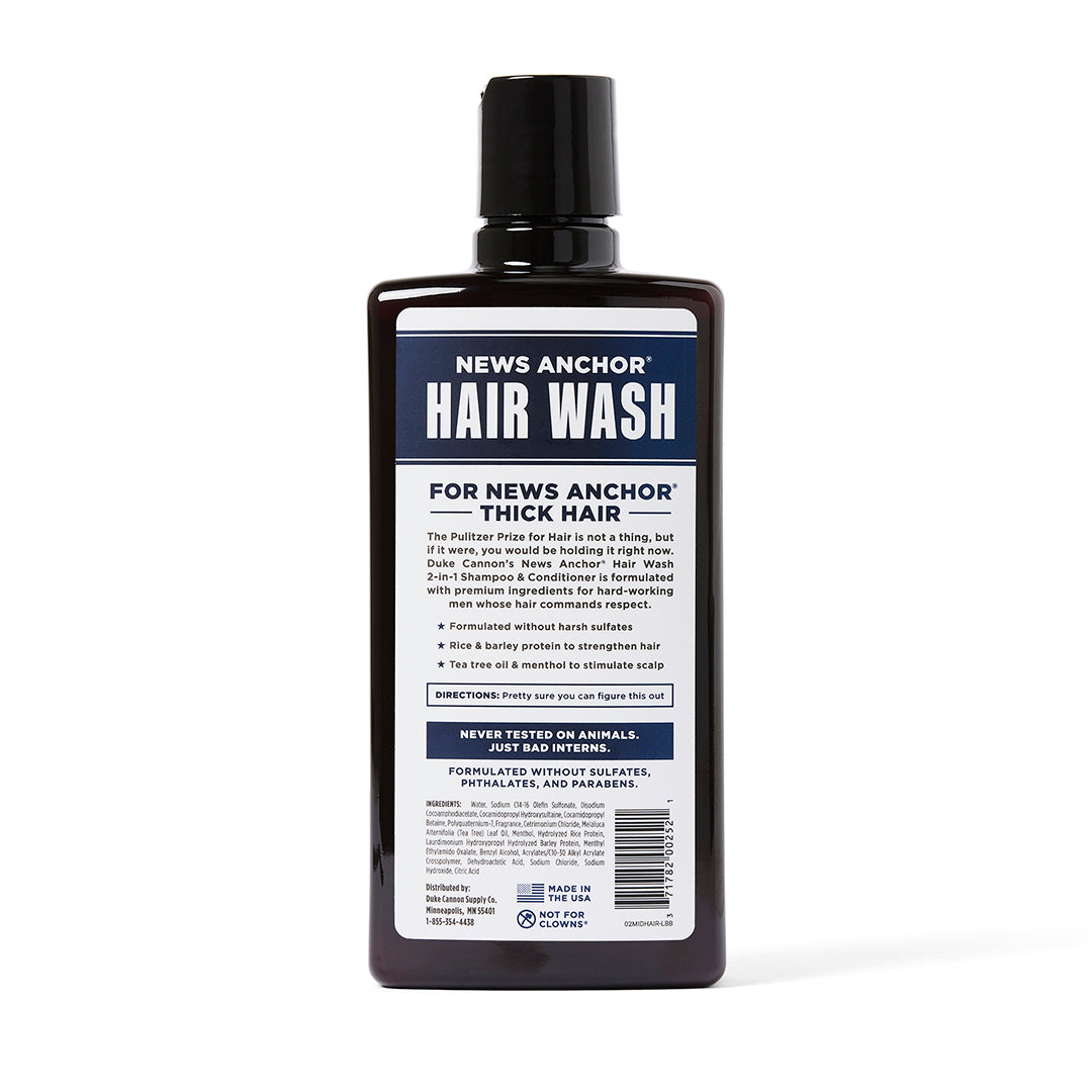 The Pulitzer Prize for Hair is not a thing, but if it were, you would be holding it right now. Duke Cannon’s News Anchor® Hair Wash 2-in-1 Shampoo & Conditioner is formulated with premium ingredients for hard-working men whose hair commands respect.