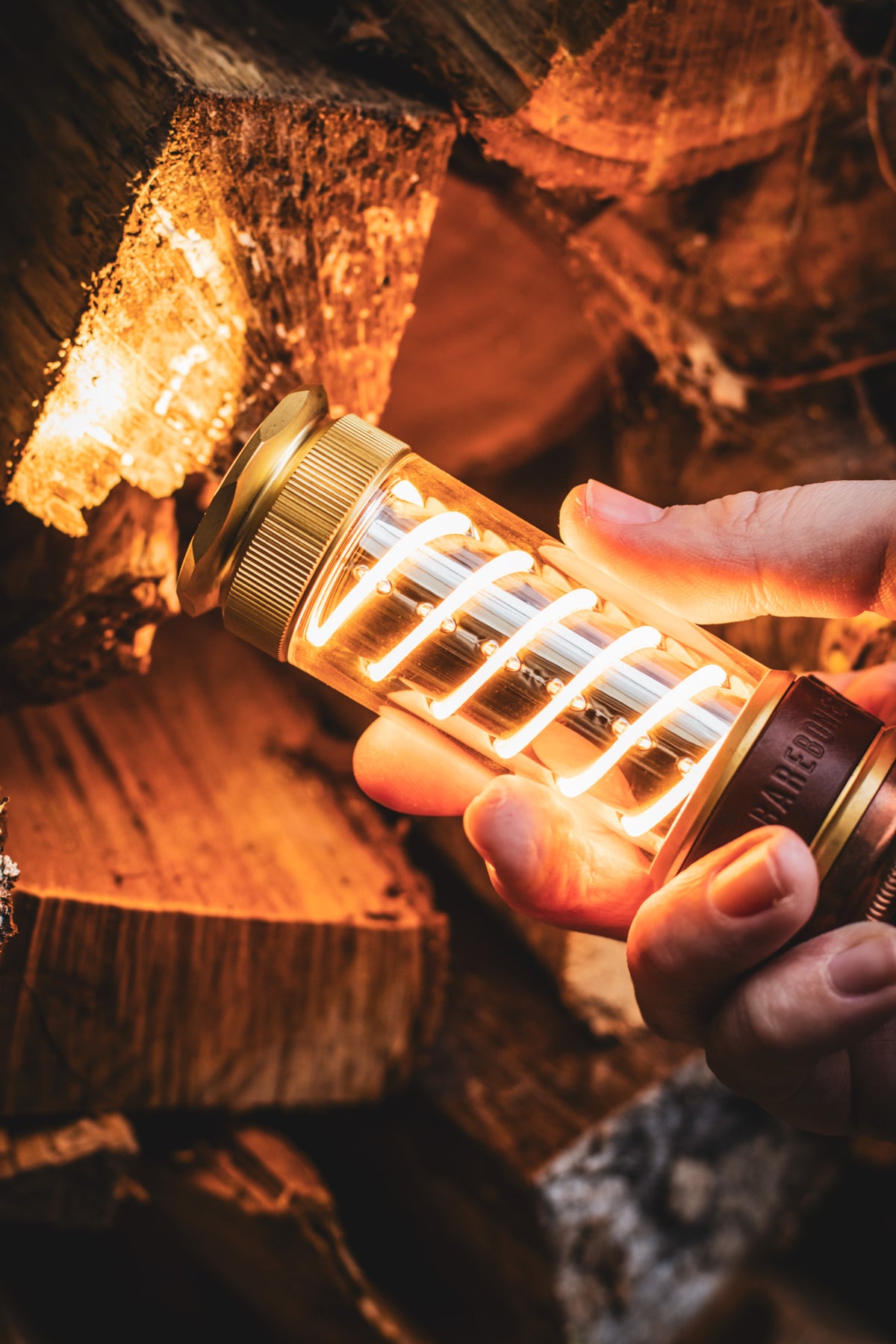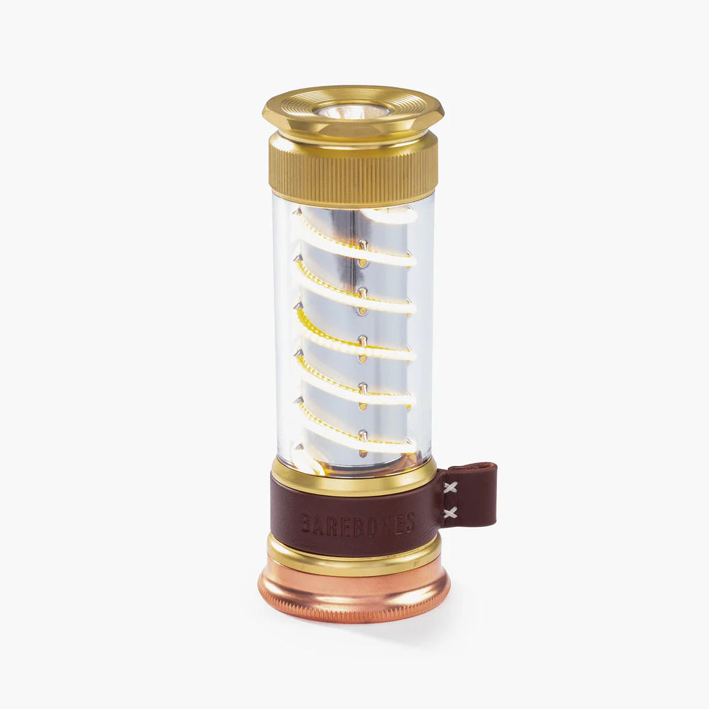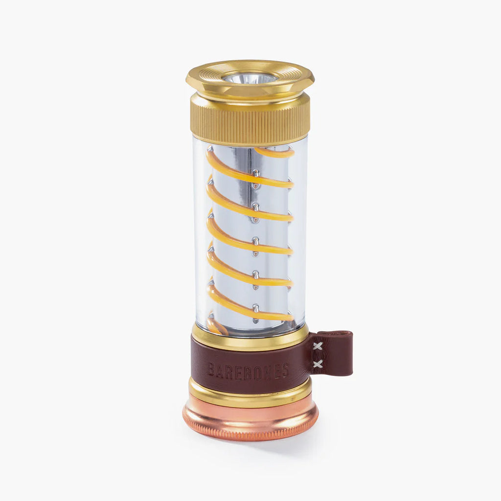 A completely unique collector's item. This vintage-inspired, 100% brass and copper light stick is an outdoor lantern and emergency flashlight in one. It is the most multi-purpose and compact light in our collection. Dual lighting options make it ideal for camp or a luxury backpacking item: light up your tent with the lantern and head down the trail with the flashlight. Clip it on your travel bag with the added strap, or store it in your emergency kit for use when you need it.