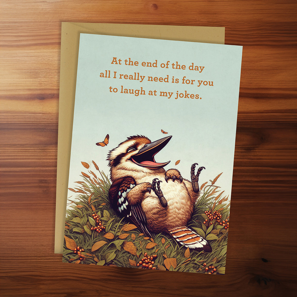 Card reads: At the end of the day all I really need is for you to laugh at all my jokes.