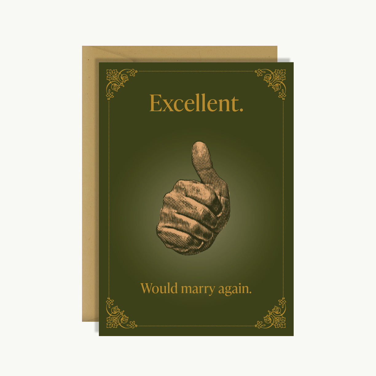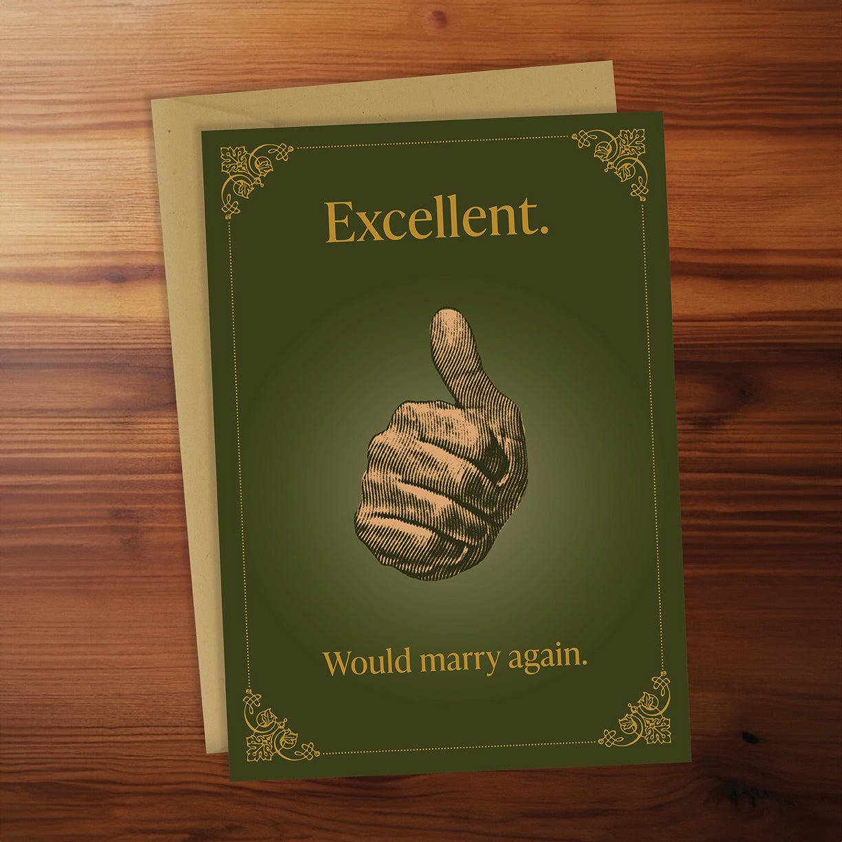 Card reads: Excellent. Would marry again.