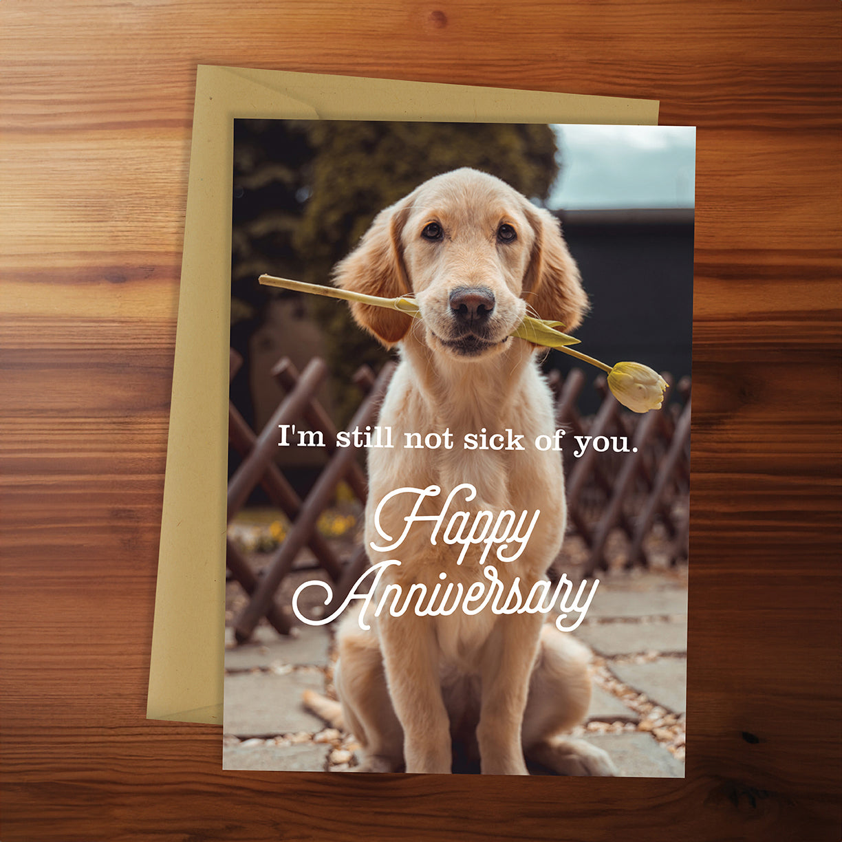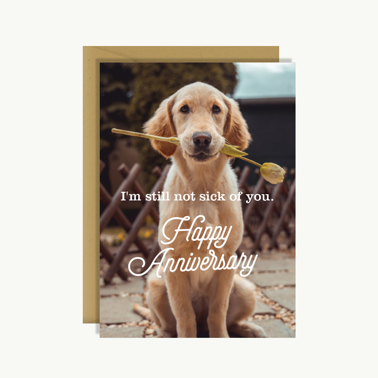 Card reads: I'm still not sick of you. Happy Anniversary.