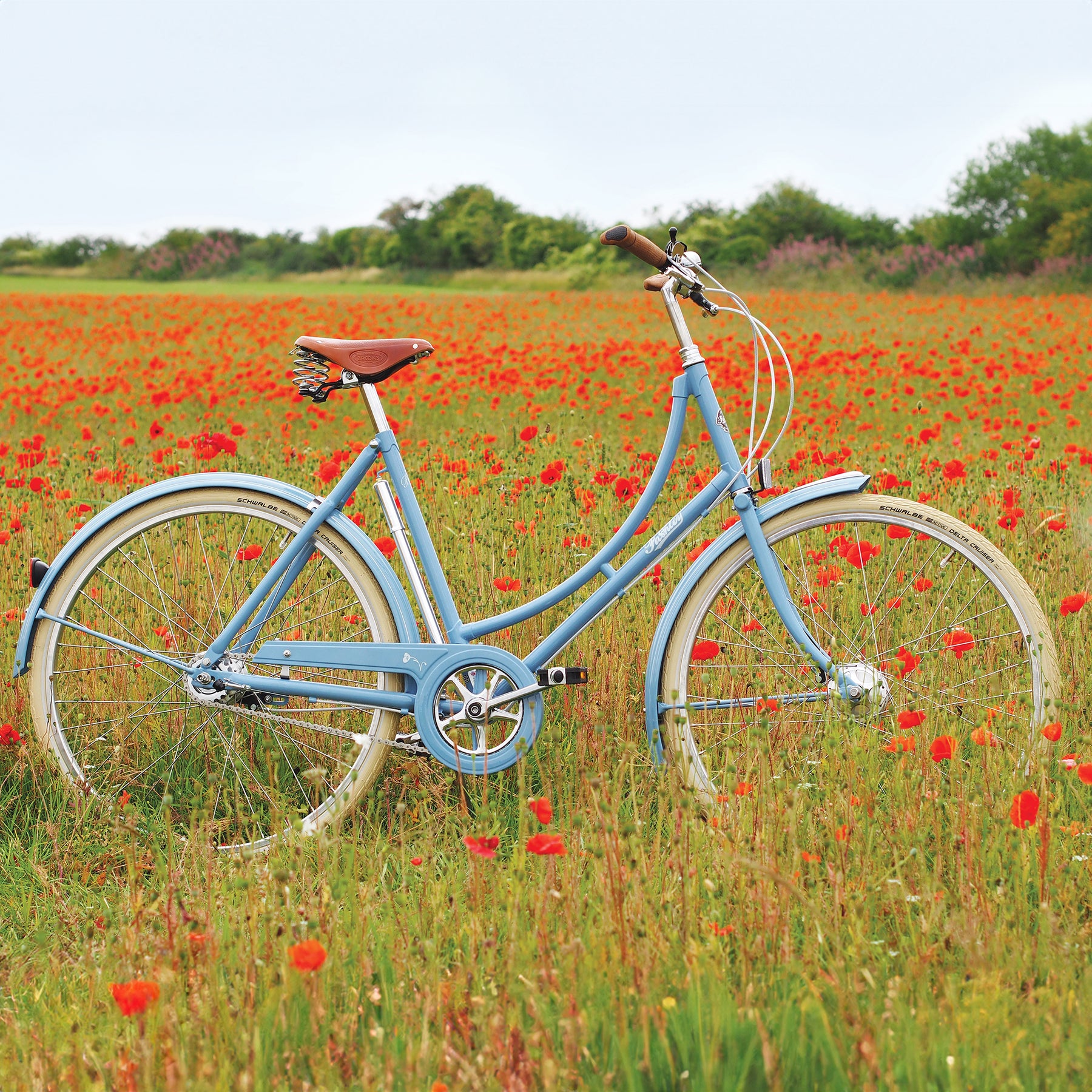 Few bicycles epitomise the romance of cycling like the glorious Britannia. Its graceful looks, striking colour options and stylish front-mounted wicker basket are sure to turn heads.