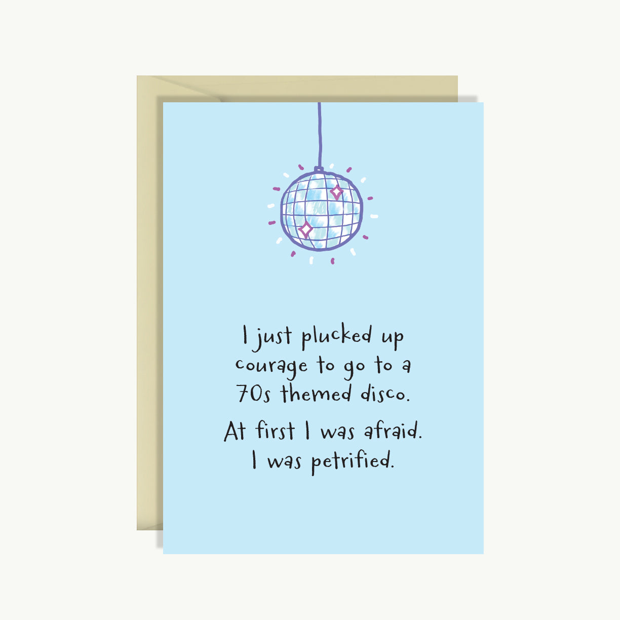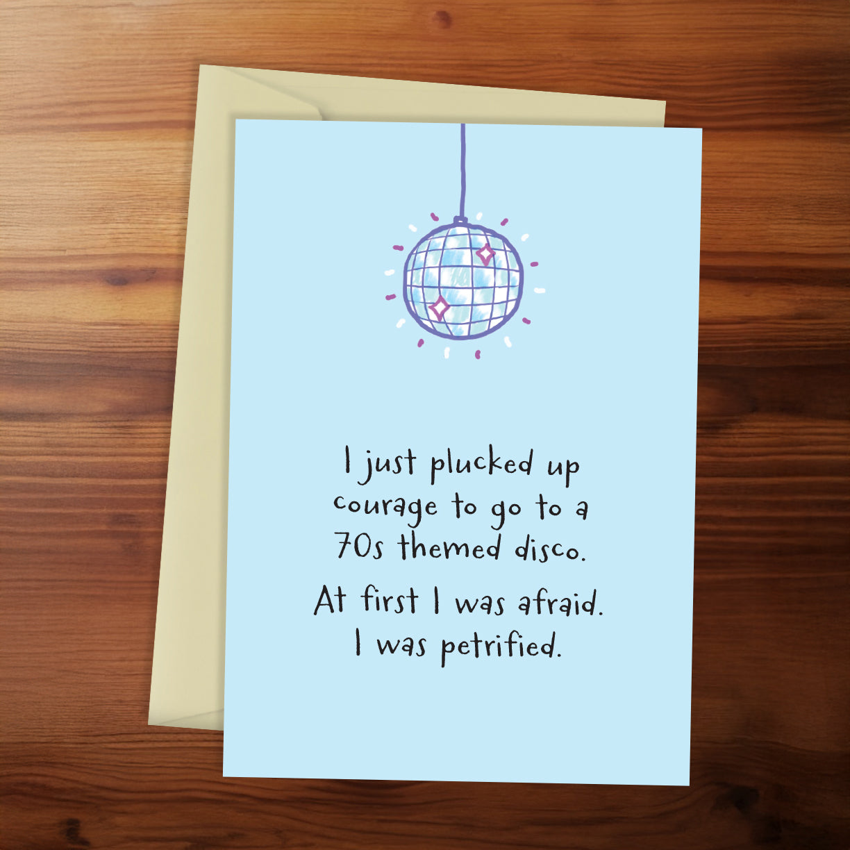 I just plucked up the courage to go to a 70s themed disco. At first I was afraid. I was petrified.