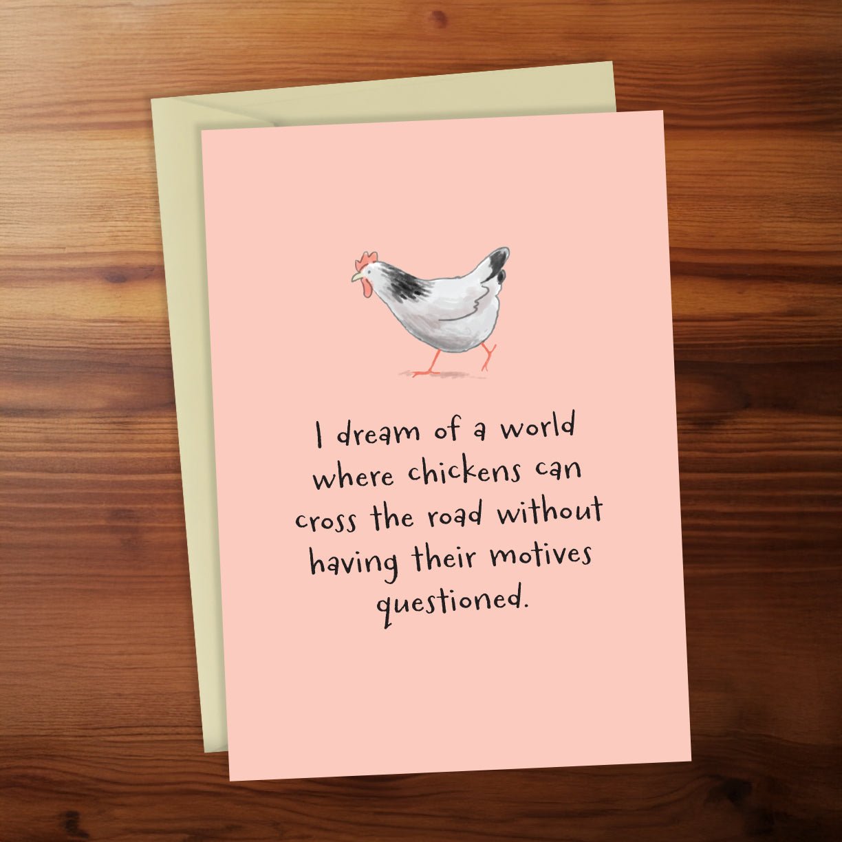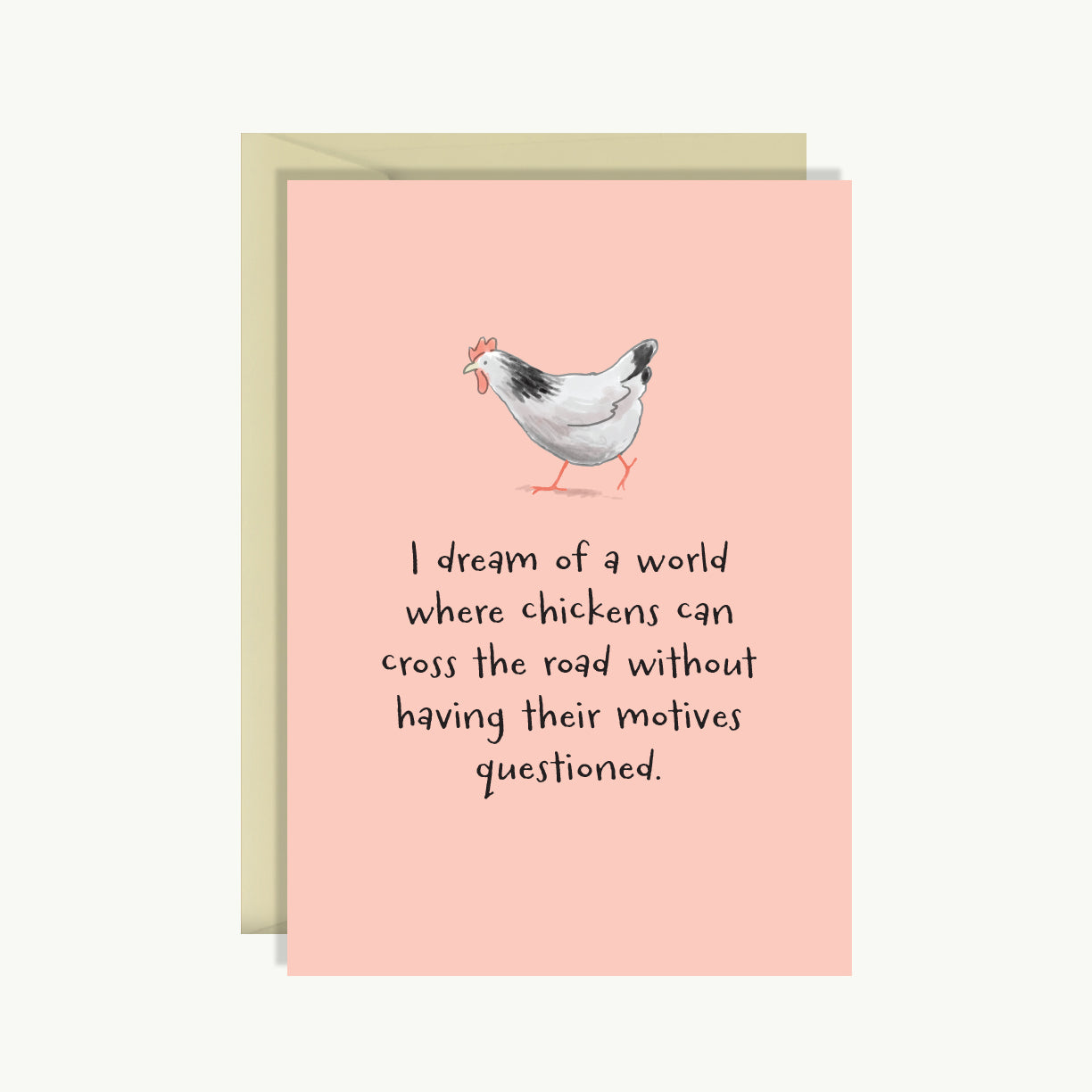 I dream of a world where chickens can cross the road without having their motive questioned.