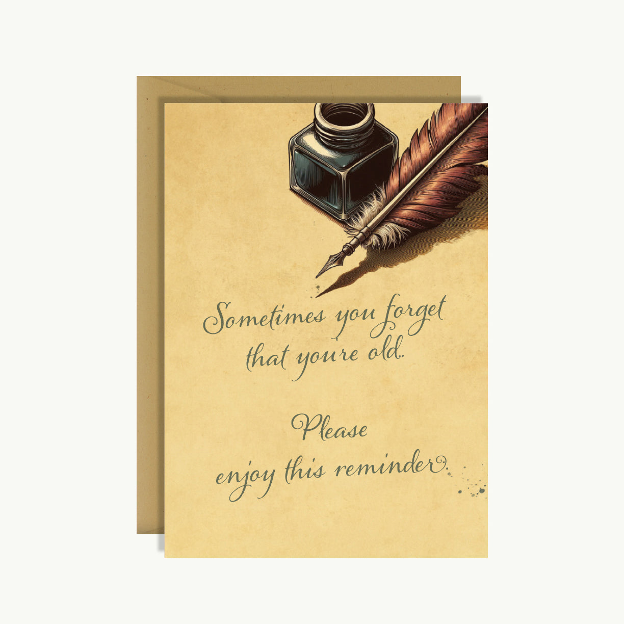 Card reads: Sometimes you forget that you're old. Please enjoy this reminder.
