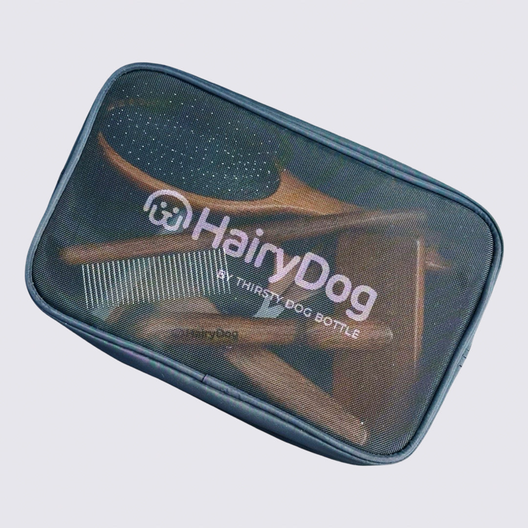 The Hairy Dog Travel Grooming Kit is made up of a collection of beautiful versatile stainless steel wooden grooming tools — in a slick breathable bag.