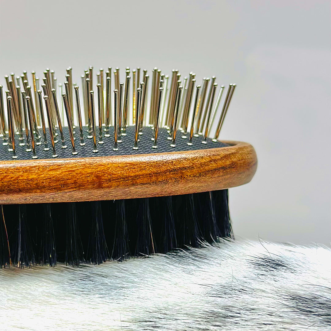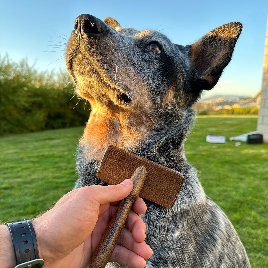 Hairy Multi-Brush: A smart-looking wooden and stainless steel multi-dog brush that can efficiently brush, massage, and polish your dog or cat's coat. The Brush is made with stainless steel needles with protective ball tips and premium beechwood.