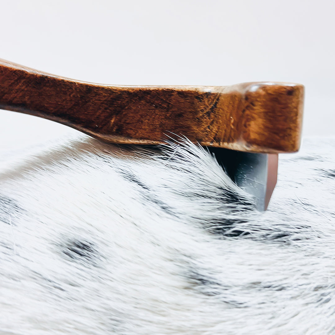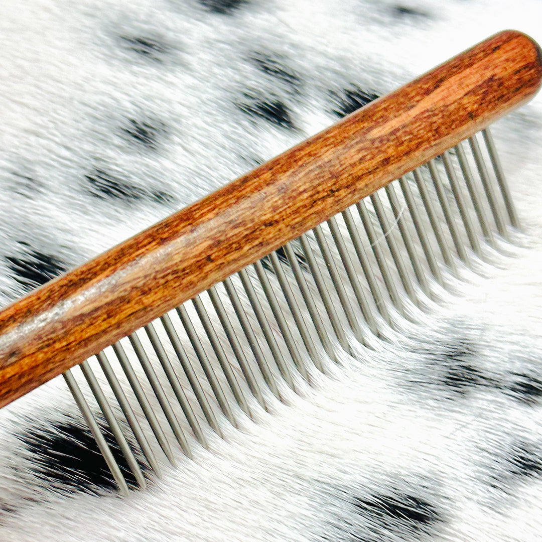 Hairy Shedding Rake: A smart-looking wooden and stainless steel shedding rake that can expertly remove loose hair, clean, untangle, and style the coat. The Hairy Rake is medium-sized and made with a sharp, high-quality stainless steel blade and premium beechwood.