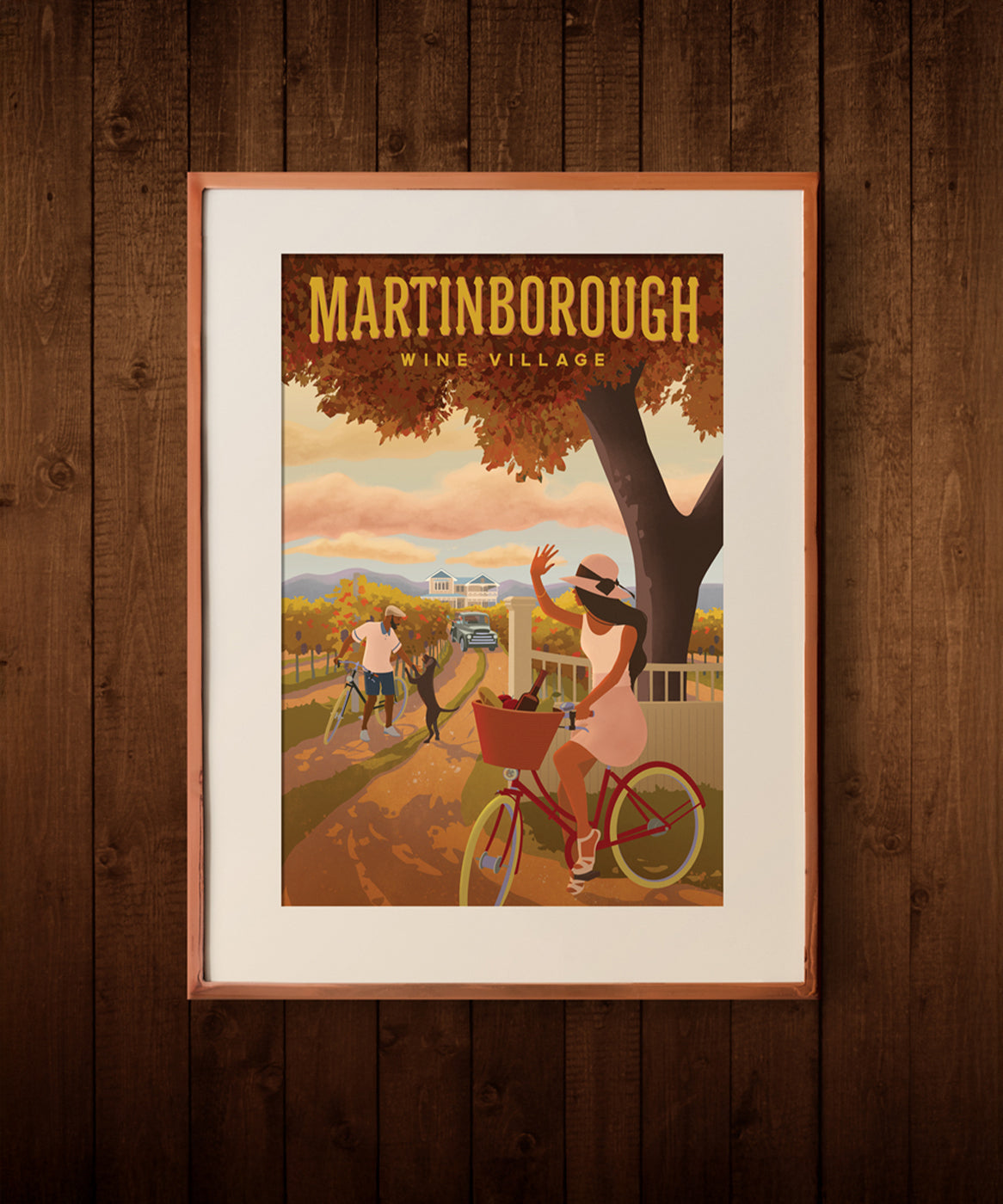 Martinborough Wine Village: Only a limited number of these beautiful art prints by designer Paul Rees have been printed by local company Lamb Peters Print of Greytown.