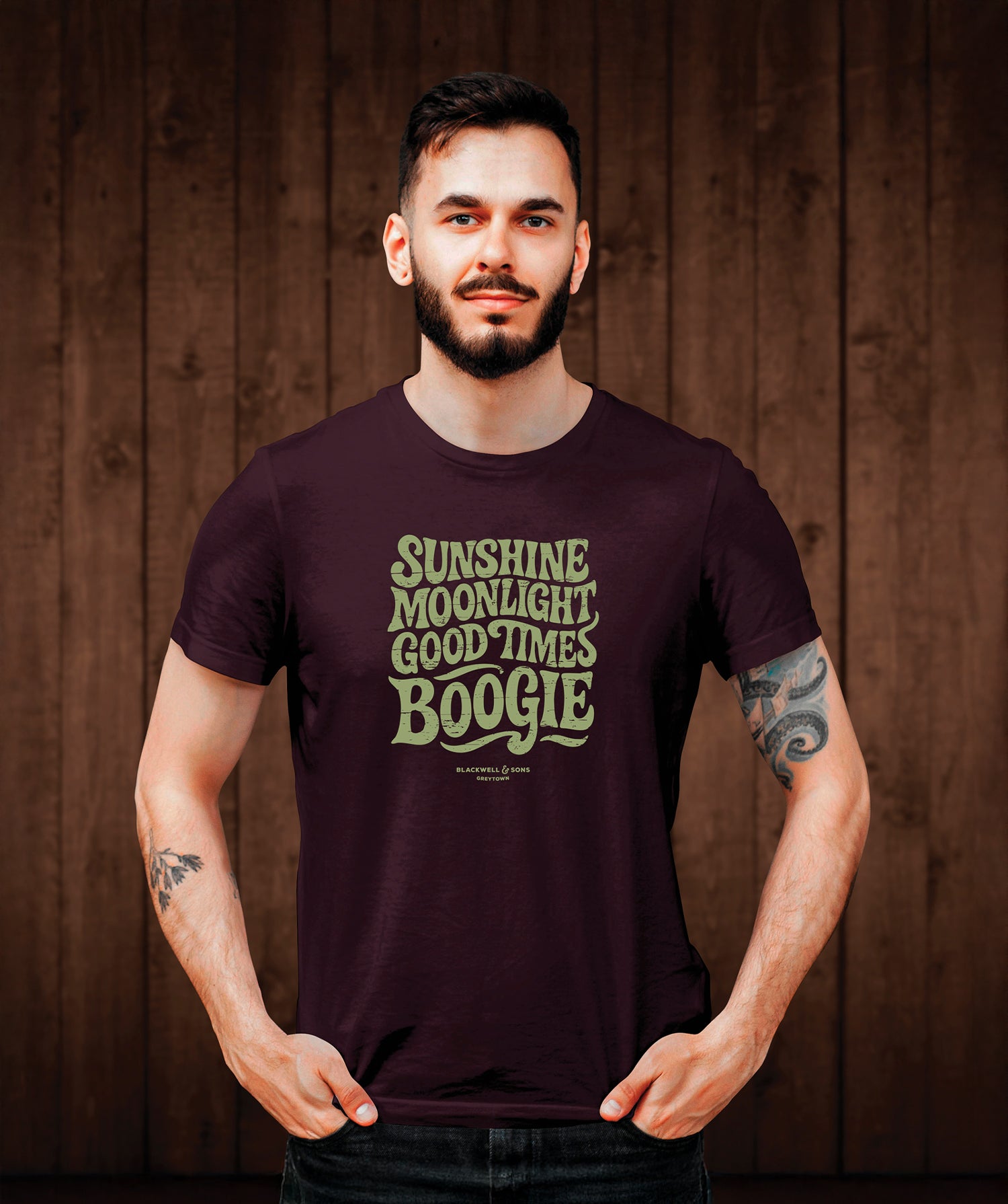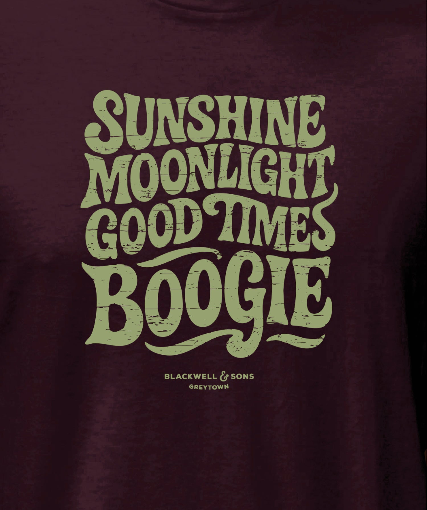 Sunshine, Moonlight, Good Times, Boogie Tee Shirt - Maroon